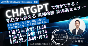 先日、こうした切実な悩みを抱えるシンガポールで奮闘するビジネスパーソンの皆様に向けて、弊社は「ChatGPTで何ができる?明日から使える業務改善 具体例セミナー」と題したオンラインセミナーを開催いたしました。